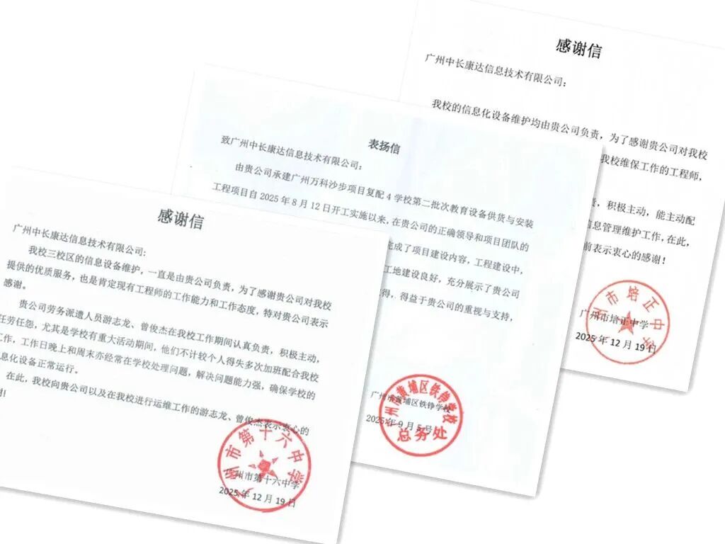 近日,广州市第七中学、广州市第十六中学、广州市从化区人民法院等多家单位相继向中长康达发来感谢信与表扬信,对公司建设项目及运维团队展